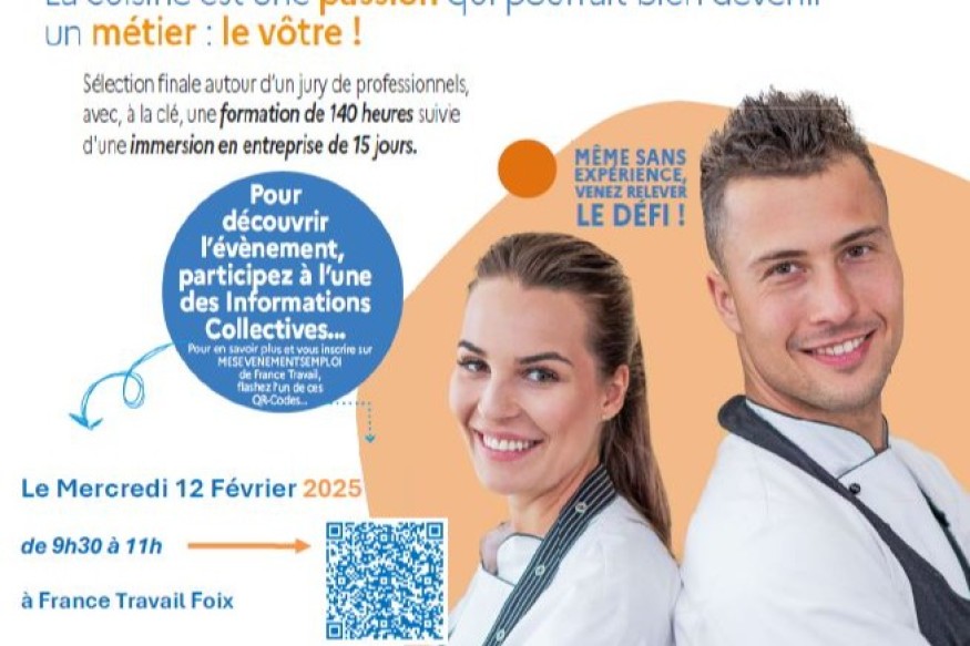 Le concours Job Chef aura lieu le lundi 16 mars, à Tarbes. Si vous souhaitez faire de votre passion pour la cuisine votre futur métier, cet événement est fait pour vous. À l’issue du concours, quel que soit votre classement, vous intégrerez une formation complétée par 15 jours de stage en entreprise sur le métier de commis de cuisine. L’inscription à la participation au concours Job Chef est obligatoire par votre présence à la réunion d’information, le jeudi 19 février à 10 h, à Séméac. Lors de cette réunion, on vous présentera le......